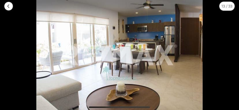 En renta departamento a largo plazo de 1 año a 6 meses mínimo. en la zona exclusiva de aldea zama, en un hermoso complejo. 2 recámaras. 2 baños y medio. sala y comedor. terraza. cocina equipada. centro de lavado. alberca...